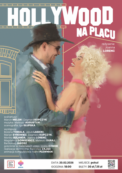 Najnowsza przebojowa komedia Teatru dla Dorosłych w języku śląskim i „śląsko-amerykańskim”, opowiada (z przymrużeniem oka) o początkach niezależnego kina na Śląsku. Akcja dzieje się na placu, a bohaterami są zwykli mieszkańcy i sąsiedzi. Zwykli, ale każdy z nich się czymś wyróżnia. Widzimy Hyjdlę, która przygotowuje swój geburstag, jej syna Józika, wspaniałe, acz jak zwykle krytyczne sąsiadki i starego, wrażliwego Wanota, który nie wylewa za kołnierz i jest ważną częścią placu.